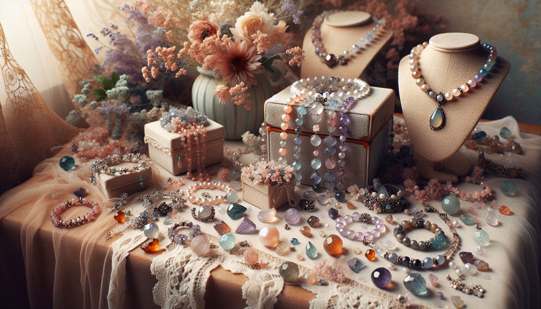 Quartz, Blue Spot Jasper & Moonstone Necklace | 18K Gold-Plated | 16" Adjustable