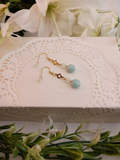 Amazonite & Moonstone Drop Earrings | 18K Gold-Plated Clover Link | 2"